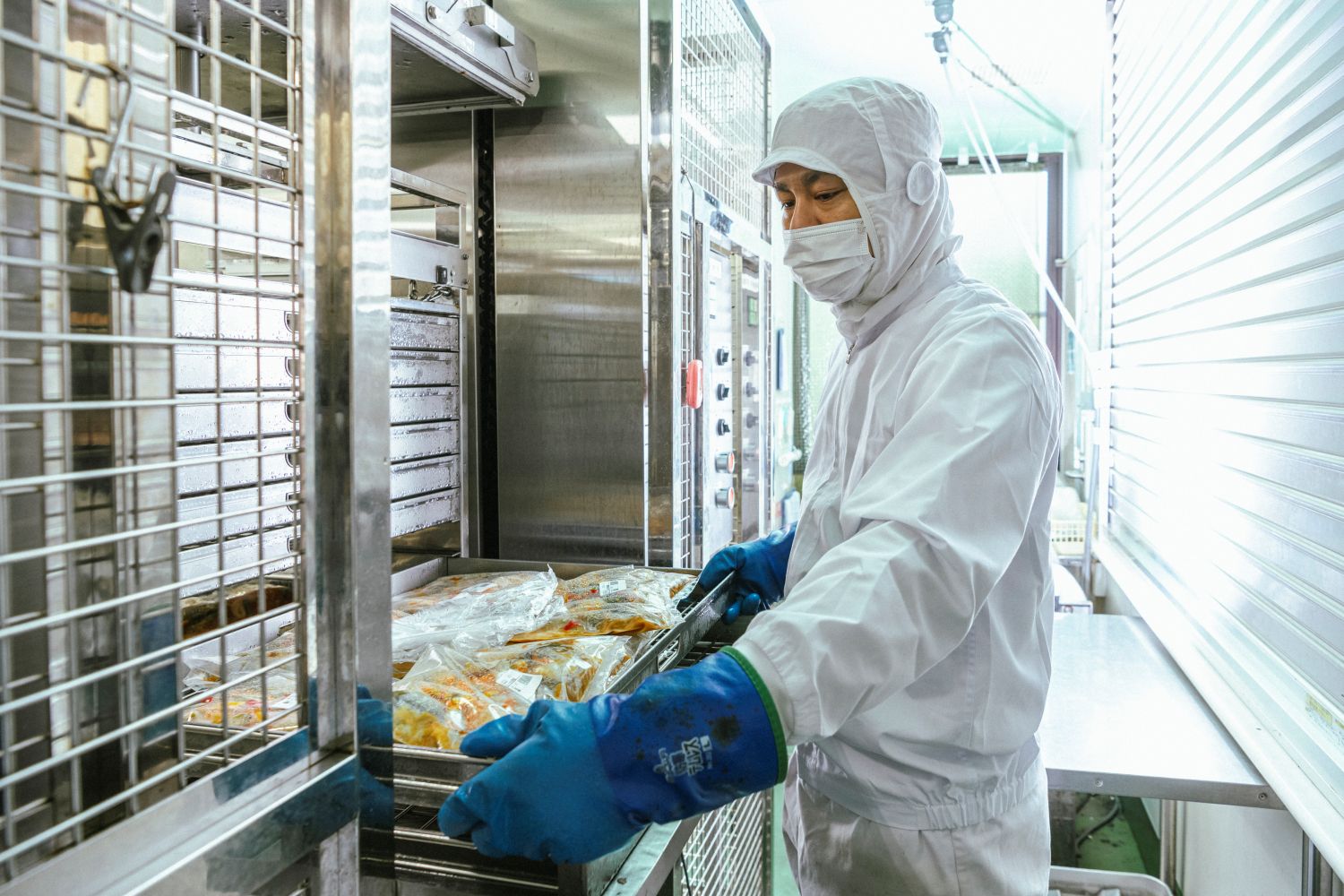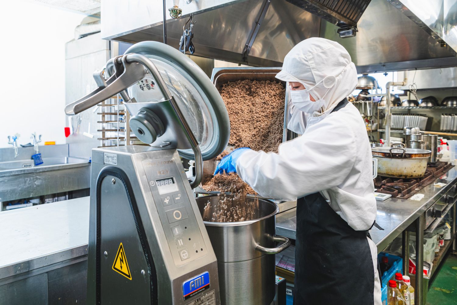11月、大量生産に向けた試作がスタート。調味料の量や食材の選定など微調整を繰り返しながら、翌22年3月、凝固剤不使用の冷凍ソフト食が完成しました。