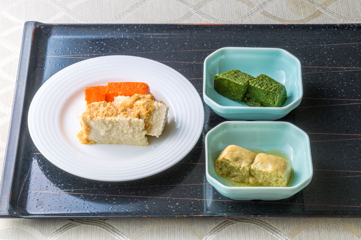 同社が手がける介護食は「ソフト食」と呼ばれるもので、通常の料理と同じように調理した後、フードプロセッサーでペースト状にし、凝固剤で成形します。歯茎や舌で押しつぶせるほど軟らかく、嚥えん下げ しやすいのが特長です。「人材不足が進み、厨房で一から料理を作るのが難しくなる時代が来ることを見越してスタートしました」と事業の立ち上げから携わってきた経営計画推進本部の小田智輝課長は話します。