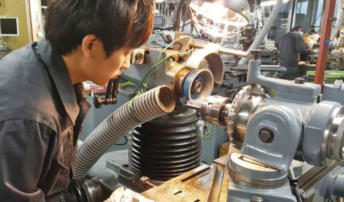 工作機械に取り付けて使用する切削工具は、その切れ味の良しあしが母材の加工精度を左右します。同社が選ばれる理由は、最先端の設備をそろえ短納期に対応できることと、職人の技術力の高さにあります。「工具によっては手作業で1000分の1mm単位の精度まで求められます」