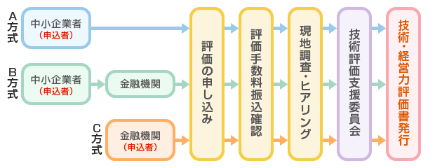 金融機関には、中小企業の同意を得てセンターに申し込む方法(C方式)があります。